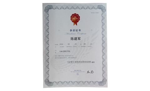 2014年陳建軍同志參加“YBP骨干導師培訓師培訓班”順利結(jié)業(yè)。